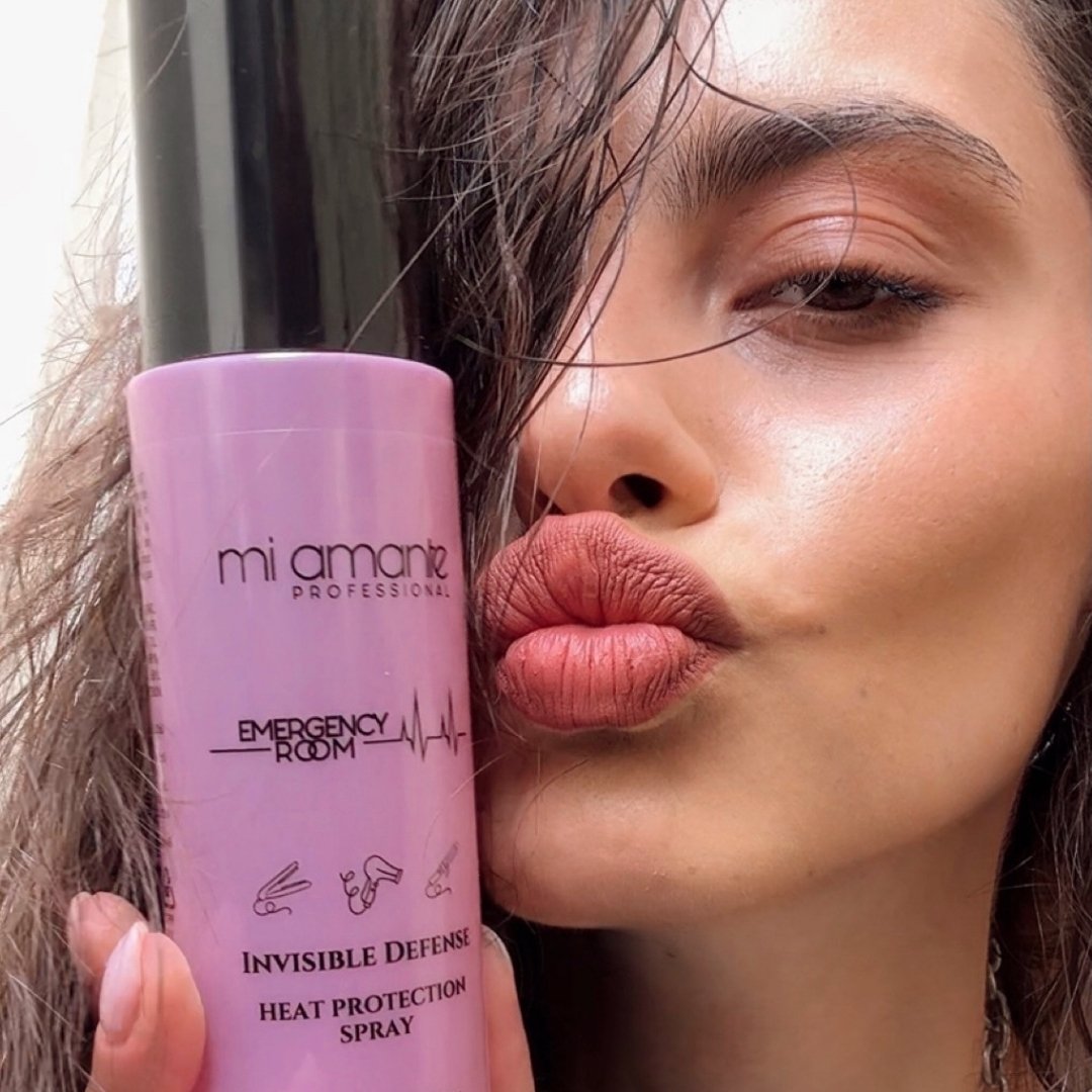 Mi Amante Invisible Defense to lekki i skuteczny spray termoochronny, stworzony, aby chronić włosy przed szkodliwym działaniem wysokich temperatur podczas suszenia, prostowania i kręcenia.